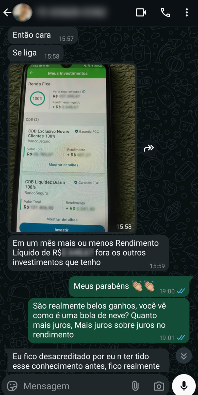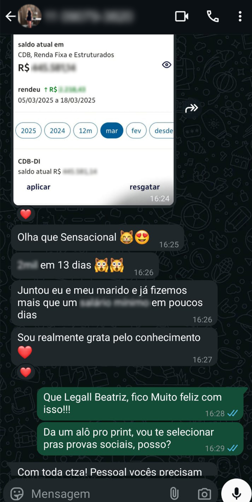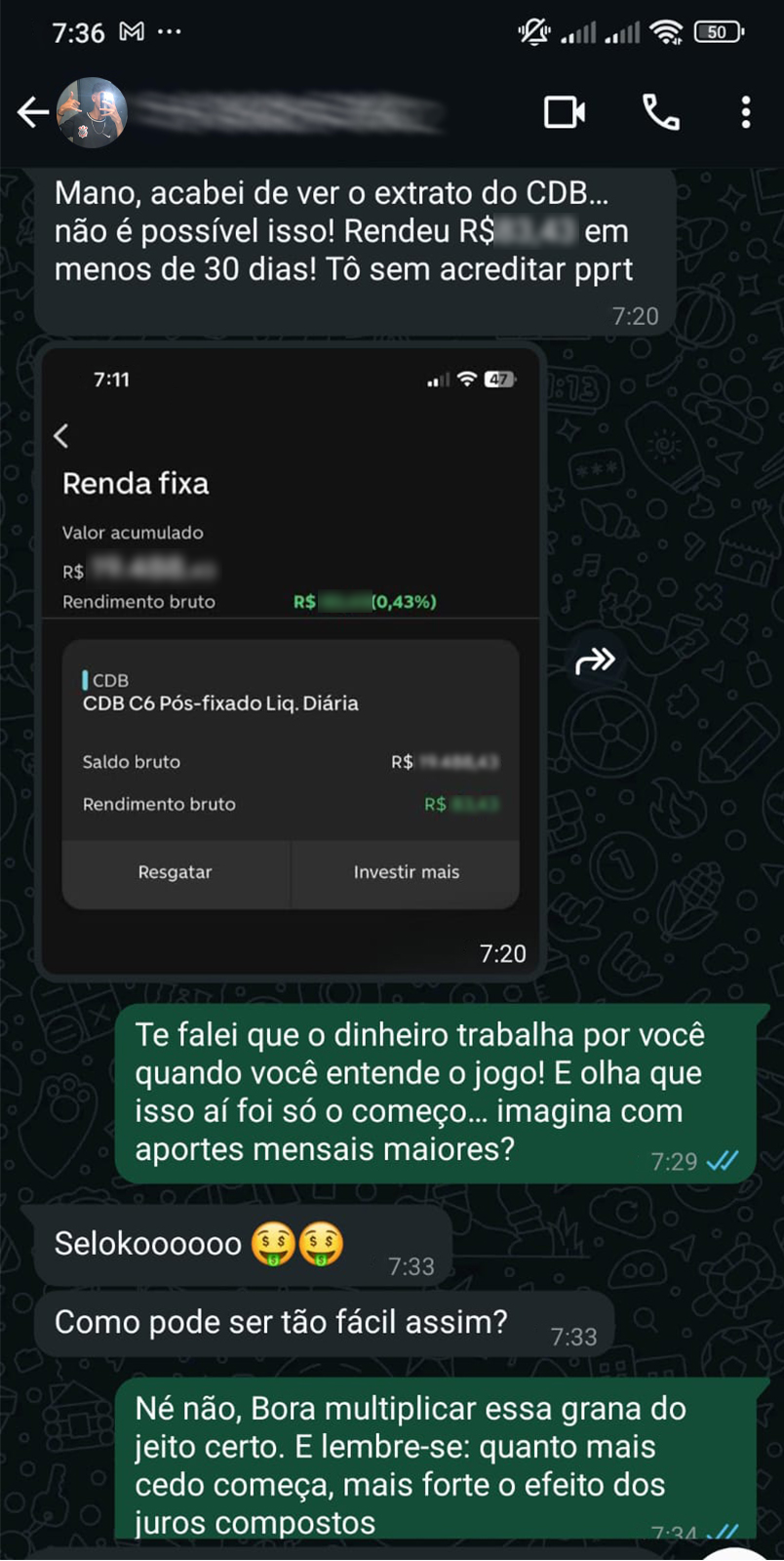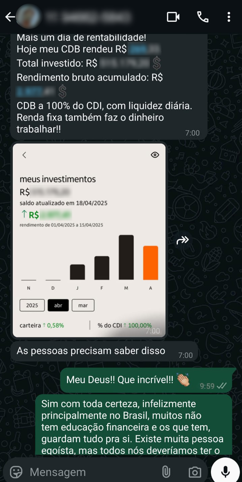 Em busca de conhecimento, Wesley começou a estudar investimentos, iniciando pelo CDB DI, uma opção considerada segura e acessível para quem está começando. Com disciplina e prática, ele foi aprendendo a aplicar o que estudava e a construir uma base financeira mais sólida.